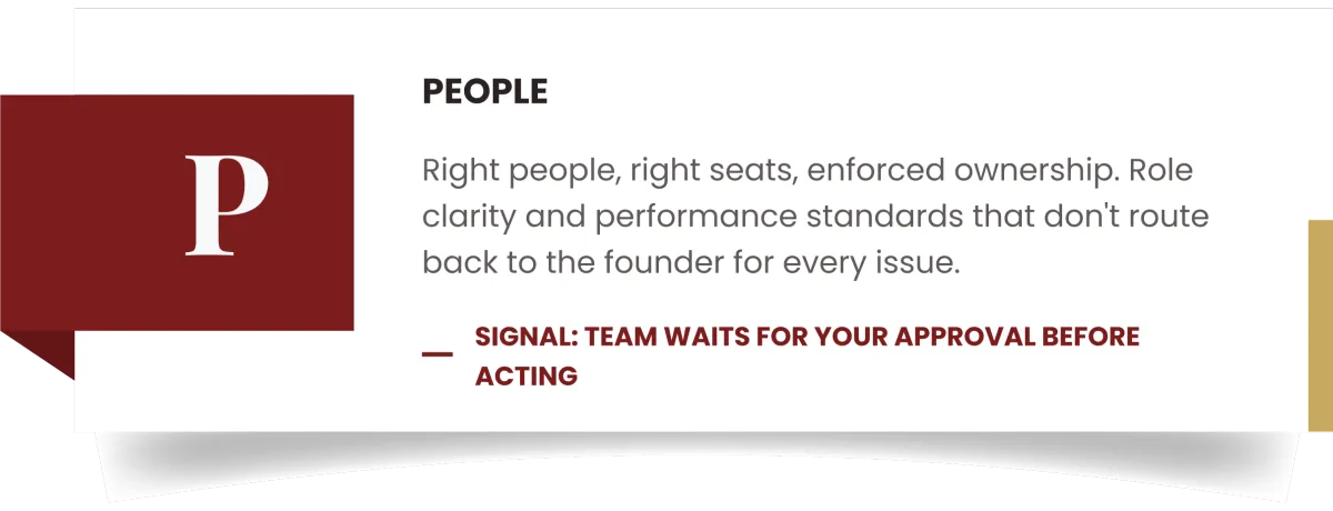 Delegation without an authority layer fails every time - not because you delegated poorly, but because you delegated into a structural vacuum. When no one with authority is holding the output accountable, decisions route back to the founder by default. 2X installs that authority layer first. That's the single thing that makes delegation stick. The team doesn't change. The architecture